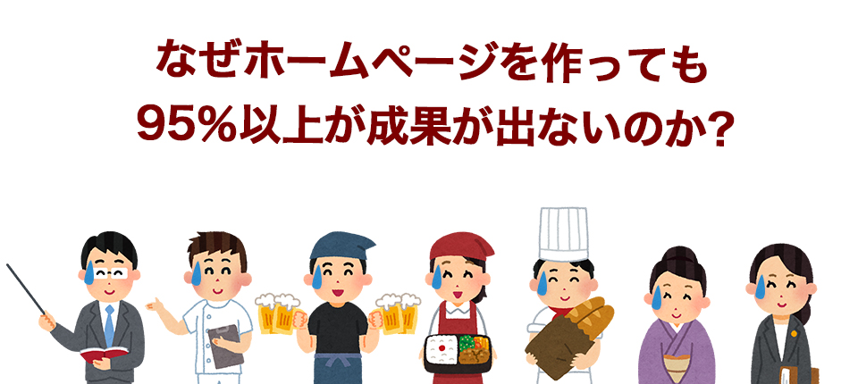 ホームページを作った会社の、実に95%以上が「ホームページで集客ができていない」というデータがあります。